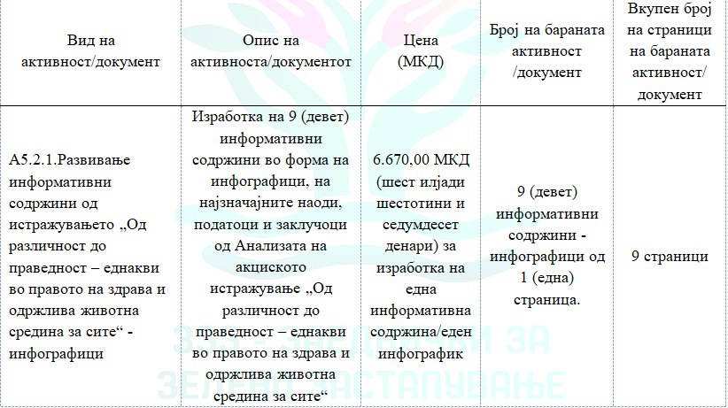 Информации за ангажманот на лице за развивање информативни содржини/инфографици од истражувањето „Од различност до праведност – еднакви во правото на здрава и одржлива животна средина за сите“