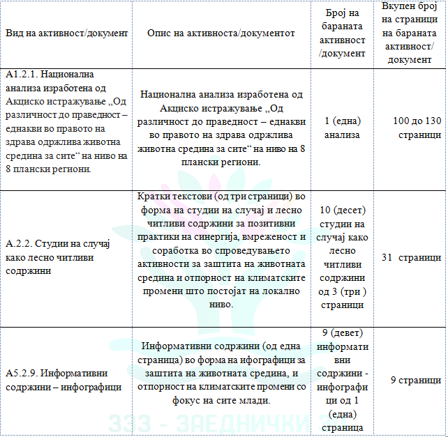 ИМЕ: ЗЗЗ - ЗАЕДНИЧКИ ЗА ЗЕЛЕНО ЗАСТАПУВАЊЕ ЗА ЗАШТИТА НА ЖИВОТНАТА СРЕДИНА